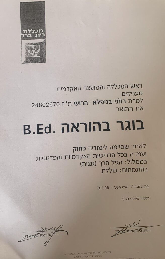 השכלה אקדמית והכשרות מגוונות מעולמות החינוך, הפסיכולוגיה, הסוציולוגיה, האימון והטיפול – עם כלים מתקדמים כמו NLP, אבחון בציור וביבליותרפיה – למענה מדויק ומעמיק.